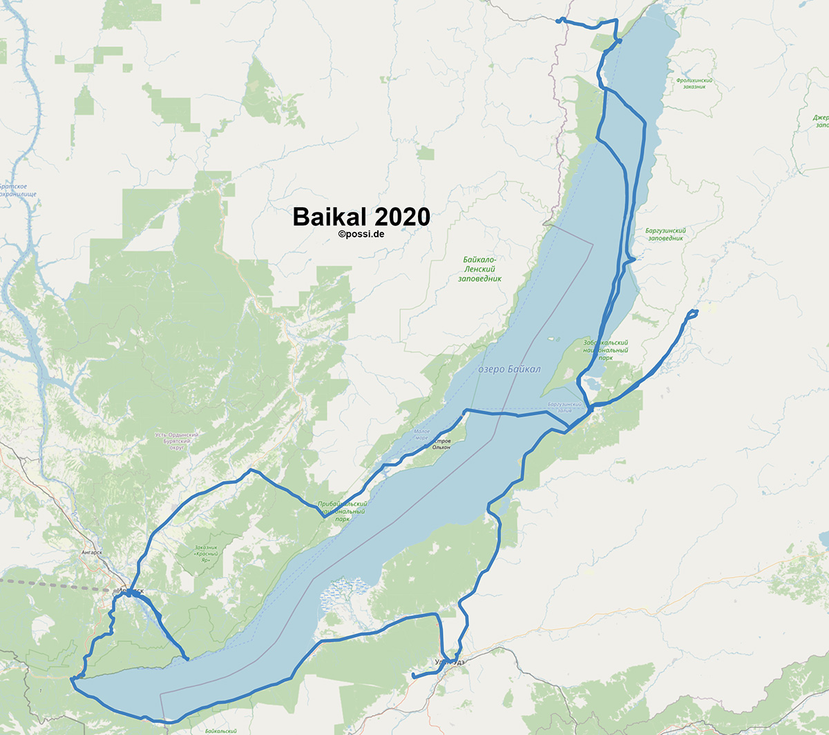 Die Reise war sehr interessant. Hier die Route. Wir flogen über Moskau nach Irtusk, besuchten den Ausflugsort Listwjanka, fuhren mit der Transsirb am Südostufers des Baikalsee nach Ulan-Ude, besuchten Sabaikalskij, Bargusin, Burjaten-Dörfer, fuhren in unserem Buchanka ("4x4 Semmelbus") nach Ust-Bargusin (wo wir schon vor Jahren mit dem Motorrad übernachtet hatten), weiter nach Tschivirkuiskij, übers Eis des Sees nach Dawscha (weitgehend verlassener Stützpunkt), dann quer über den See nach Severobaikalsk am Nordufer, nach einem ausgiebigen Besuch des Banja nach Baikalskoje, übers Eis zum Kap Kotelnikovskij nach Olchon, der interessanten Insel, wo wir ebenfalls bereits mit dem Motorrad waren, zum Hauptort Chuzir mit dem bekannten Schamanenfelsen. Von hier übers Eis wieder nach Irkutsk. Weiterflug nach Moskau und mit Glück nach Berlin, dann noch mit dem leeren Intercity nach München.