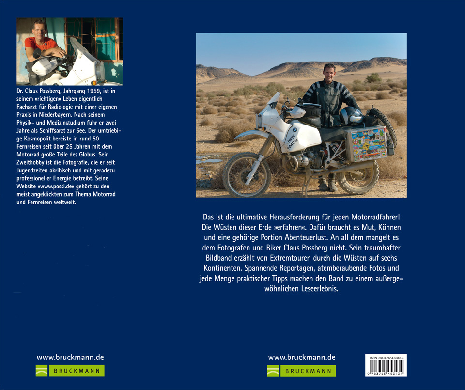 V 1.0.3 vom 14.12.09 updated 14.12.09 ©2009 Anfang Dezember 2009 ist mein Bildband "Motorradtraum Wüste" beim Bruckmann-Verlag erschienen. Ein prächtig ausgestatter Band mit 144 Seiten, wahrheitsgetreue (!) Beschreibung von neun meiner Reisen und dazu viele faszinierende Fotos. Das letzte Kapitel erläutert recht detailliert, wie man solche Reisen durchführt. Es ist kein unkalkulierbares Risiko und auch kein Begleitfahrzeug erforderlich. Das letzte Kapitel lässt sich als PDF hier auch ungekürzt downladen. Von Amazon-Kunden und bei motorradreisefuehrer.de habe ich schon einige sehr positive Rezensionen erhalten, was mich sehr freut. Oder hier. Oder hier. Ein schönes Geschenk für alle, die sich für Motorrad-Abenteuer, exotische Länder und technisch anspruchsvolle Fotos interessieren. Passend zum Buch ist für 2010 auch ein schöner Kalender erhältlich (Update Januar 2010: leider beim Verlag vergriffen). ![]() ![]() |