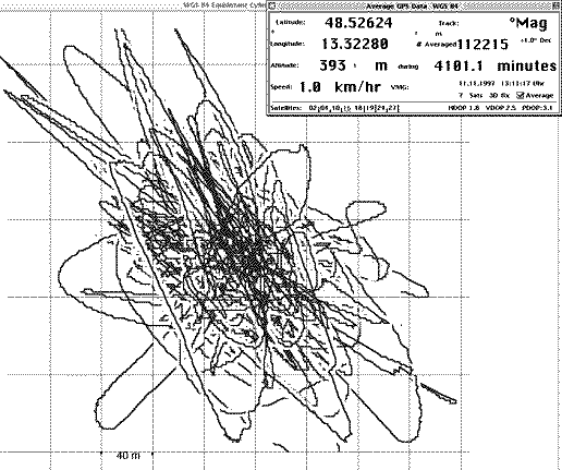 Eines meiner Lieblingsspielzeuge ist ein kleines Handheld-GPS-Gerät. Damit kann man eine Menge toller Sachen machen. Natürlich zeigt es die aktuelle Position an, dazu Fahrtrichtung, Geschwindigkeit, Atomzeit, eine Minikarte mit Bezugspunkten und Entfernungen dazu, aber auch so witzige Sachen wie Sonnenauf- und Untergangszeit u.v.a.m. Die kleinsten derzeit erhältlichen Geräte sind die Garmin Handhelds. Ein Garmin GPS40 habe ich Ende 1994 beim Därr in München für fast 1000 Mark gekauft, die derzeitigen Preise liegen natürlich viel niedriger. Im März 96 kam dann der Garmin GPS38, ein GPS40 ohne Antennensteckdose, dafür mehr Routenspeicher, Kompass-Seite, Echtwegstrecke u.a. Im Januar 97 kam der Garmin II auf den Markt, er bietet wahlweise horizontalen und vertikalen Betrieb, die Klappantenne halte ich am Motorrad allerdings für problematisch. Wegen Wasserundichtigkeit hatte ich damals bereits zwei kleine Garmins verloren, die jeweils wieder auf Garantie ersetzt wurden. Die Symtome sind immer gleich, beschlagenes Display, evtl. Ausfall von Pixelzeilen, der Empfang selbst funktionierte noch. Der harte Einsatz am Motorrad über tausende Kilometer bei Vibrationen und scharfen Schlagregen fordert seinen Tribut - eigentlich sollte es ja nicht sein. Als technologischen Durchbruch schaffte es Garmin als erster Hersteller, seine kleinen Handhelds mit einem 12-Kanal-Paralellempfänger auszustatten. Statt seinen Empfänger von Satellit zu Satellit ständig umzuschalten, werden mit dem Parallelempfänger jetzt bis zu 12 Satelliten gleichzeitig verfolgt. Das bringt drastisch höhere Geschwindigkeit beim Position-Finden, aber auch höhere Päzision beim Tracking und bei der Standortberechnung - so weit die Verschleierung des amerikanischen Verteidigungsministeriums (sog. SA) das zuläßt. Für mich habe ich gleich mit der Ankündigung dieser neuen Technik einen GPS 12XL bestellt, der dann nach einigen Wochen Produktionsverzögerung auch aus USA eintraf. Er hat die gleiche Bauform wie der GPS38/40 mit seinem 8-Kanal-Multiplex-Receiver, aber eben einen echten(!) 12-Kanal-Parallel-Receiver und mehr Speicherplatz (512 Waypoints, 1024 Trackpoints). Sehr schnell ist der Empfänger mit dieser Paralell-Empfangstechnik und auch unter lichtem Laub funktionsfähig. Ich selbst bin auch zufrieden mit den Eigenschaften des Empfangssystems und der Software. Trotz aller Beteuerungen von Garmin, die Wasserdichtigkeit verbessert zu haben, habe ich allerdings bereits auch an meinem GPS12XL einmal ein beschlagenes Display gehabt, wie das wohl weitergeht? Jedenfalls habe ich das Gerät am 03.11.97 nach England zu Garmin Europe geschickt, um um Garantie nachzusuchen. Was Garantie angeht, ist Garmin recht kulant, innerhalb von nur 6 Tagen nach Einsendung meines GPS12XL nach England habe ich einen nagelneuen GPS12XL mit aktueller Software erhalten. Entfallen war beim GPS12XL und den anderen neueren Garmins auch endlich das das blöde Software Speedlimit von 90 Knoten (das sind etwa 167 km/h), das alle Vorgängermodelle noch hatten. Beim Überschreiten dieser Geschwindigkeit wurde einfach überhaupt nix mehr angezeigt. Als nächsten technologischen Sprung ist mit verbesserten Displays (höhere Pixeldichte) und eingebauter moving-map-Software zu rechnen. Ein einfaches Modell in diese Richtung ist der - nach meiner Meinung noch zu teure - Garmin GPS III. Die Genauigkeit bei der GPS-Positionsbestimmung hat seine Grenzen, sie beträgt etwa 15 Meter, wobei die künstliche Verschleierung des Signals (durch das amerikanische Verteidigungsministerium), auch als SA (Selective Availiability) bezeichnet, eine ständige langsame Bewegung ausgelesenen Position um die tatsächliche Position bewirkt. Ich habe das mal getestet und und das graphische Ergebnis meines Experiments hier zugäglich gemacht. Dieses enthält über 100.000 sekündliche Messungen in einem kontinuierlichem Zeitraum von mehreren Tagen. Die Messung erfolgte mit meinem Powerbook-Laptop und mit dem Programm GPSpro von Larry (die Lightversion in diesem Verzeichnis - nur für Macintosh Rechner). Man erkennt, dass in unseren Breiten der Ungenauigkeits-Footprint einer schräg stehenden Ellipse entspricht, die einen Durchmesser von über 300 Metern aufweist. Mit Abweichungen von bis zu 150 m ist also - wenn auch selten - durchaus zu rechnen, die aus geometrischen Gründen doppelt so ungenaue Höhe (im Vergleich zur X- und Y-Achse) kann also bis zu 300 m abweichen. Schade eigentlich, gerade die Höhe ist immer ein sehr interessanter Wert. Die durch die SA hervorgerufene Verschiebung gegenüber der wahren Position ändert sich also nach einigen Minuten im Bereich von bis zu 300 Meter, dagegen ist die Wiederholgenauigkeit nach wenigen Sekunden viel höher (3-5 Meter nach meiner Beobachtung). Die Geschwindigkeit des Wanderns des gemessenen Standortes erreichte Werte bis 6 km/h, meist war der Wert aber unter 1 km/h, der Mittelwert lag bei ca. 1 km/h. |