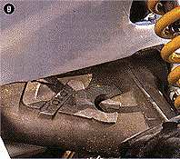 The cradle is still the original one, but reinforced around the long arm pin with large steel plates, which are also to support the exhaust system; a similar reinforcements has been added to the rear shock connection of the frame....