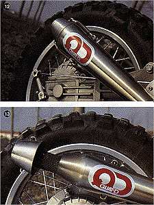 PICTURES 12 AND 13: two detailed pictures of Quat-D exhausts with removable mufflers, to get the engine completely free. With opened megaphones you cannot ride in the urban contest, but with complete mufflers. | ![]() Marco Bosi |