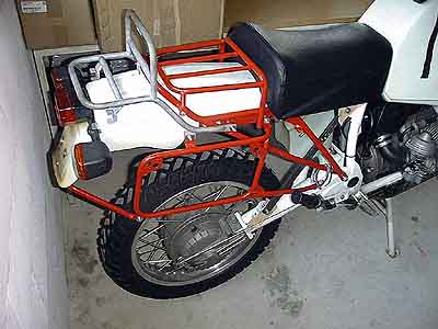 Rücknahme von einem Kunden, diese Maschine steht in Seibersdorf zum Verkauf. Einarmschwinge, Einsitzer, Cockpit am Lenker. Ein wirklich skuriler Gepäckträger ist zu sehen, ein Haufen Rohrgewirr, sicher kaum stabiler als der BMW-Originalträger aus dem er wohl gebastelt wurde.