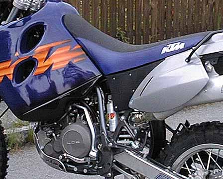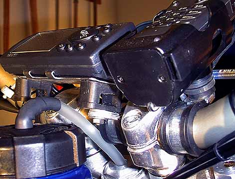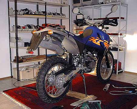 Hier habe ich noch ein paar Bilder, wo man Details des Umbaus sehen kann, insbesondere die Befestigung und Aufhängung der Cockpitgeräte. Diese Fotos sind übrigens mit einer 2 Wochen alten Digitalkamera Agfa Efoto1280 gemacht, die gibts derzeit günstig im Abverkauf (weniger als ein Drittel des ursprünglichen Preises). Die Kamera sieht verkaufshemmend amateurmäßig aus (wie alle Agfa-Kameras seit Jahren), macht aber qualitativ anständige Bilder, die fürs Web fast schon zu gut sind. Hier gehts zur KTM Bilderseite.