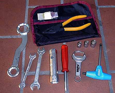 ![]() Das serienmäßig mitgelieferte Bordwerkzeug. Brauchbar und leicht, wird in Slovenien von Unior exklusiv für KTM produziert, die Qualität ist ordentlich. |