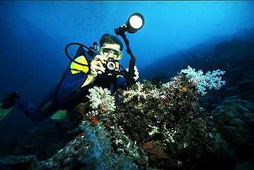 | Tauchen ist mein Sport solange ich mich erinnern kann. Schon mit 12 Jahren konnte ich nach langem Drängen gegen meine Eltern in Griechenland bei einer kleinen privaten Tauchschule meinen ersten Gerätetauchkurs absolvieren. Viele Jahre konnte ich meine Fertigkeiten ausbauen, so daß jetzt auch Freitauchtiefen von gemessenen 25 Metern und Strecken von 100 Metern schon möglich waren, ohne dass ich nun eine Sportskanone wäre. In meiner Bundeswehrzeit, die ich bei der Marine absolvierte, hatte ich sogar die Möglichkeit, einen Kurs für Tauchereinsatzleiter mitzumachen, einschliesslich Trockentauchen und Helmtauchen unter der zugefrorenen Ostsee. Ich habe privat selber nur einen guten Lungenautomaten und ein paar ABC Klamotten, aber keine Flaschen oder gar einen Kompressor. Viel Freude macht mir Unterwasserfotografie, dazu habe ich ein altes, gebraucht gekauftes Unterwassergehäuse für meine Pentax LX, wo ich verschiedenen Objektive verwenden kann (siehe auch meine Foto-Seite), ergänzt um einen Subtronic-Blitz. Ausserdem liegt hier noch eine Nikonos V rum, die ich aber mehr an meine Tauchpartner verleihe als selber verwende. Tauchpartner sind so ein Problem - Unterwasserfotografie und Partner ist ziemlich inkompatibel - zumindest wenn man hohe fotografische Ansprüche stellt ... | ![]() |