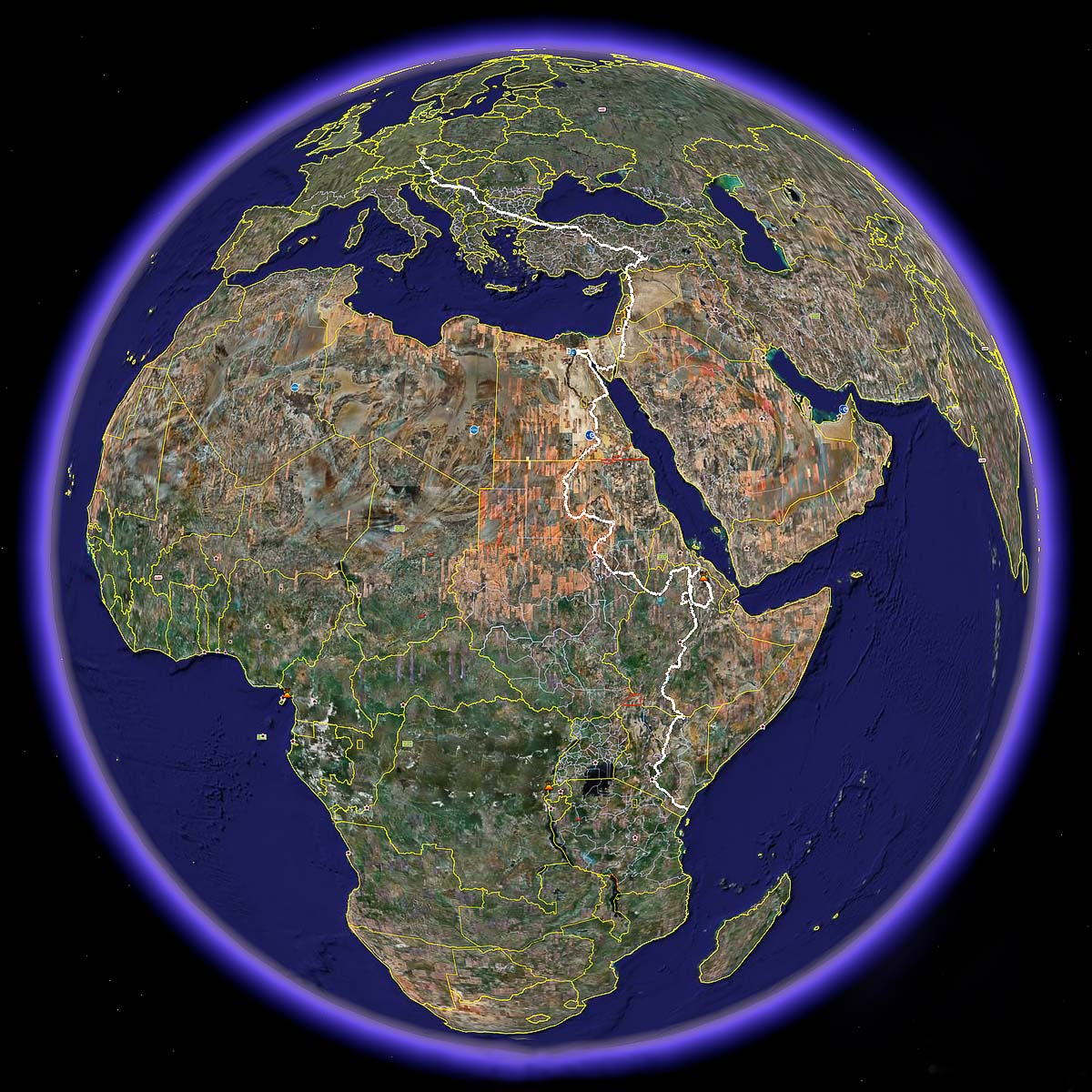 Ich möchte versuchen, ein Kurz-Tagebuch für die Reise zu verfassen, denn ich habe eine Menge erlebt, das kann ich hier auf die Schnelle auch nicht zusammenfassen. Es waren laut Navi insgesamt 14452 km. Die komplexe Strecke habe ich als 10000-Punkte Datentrack in meinem Garmin aufgezeichnet. Wer möchte, kann sie downloaden ("als Datei sichern" auswählen im Kontextmenu), z.B. um sie in Google Earth nachzuvollziehen. Hier das Ganze im Google KMZ-Format oder hier als GPX-File aus meinem Garmin zur Nachverarbeitung in Mapping-Programmen oder zumindest der Afrika-Teil als einfaches JPG.
