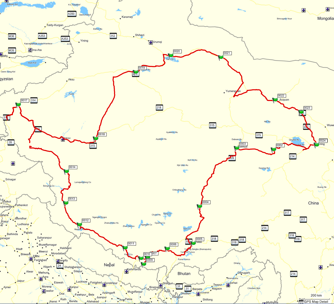 Da die Einreise mit eigener Maschine - das hatte ich schon auf meiner Seidenstrasse-Tour von 2000 erlebt - bürokratisch ungemein aufwendig ist, nahm ich das Angebot meines spanischen Freundes Ricardo aus Barcelona gerne an, seine BMWs zu benutzen. Wir machten eine private Pilotreise mit meinem Freund Peter aus Hamburg (er wurde leider schwer höhenkrank und musste bald heimfliegen) und Gustavo aus Madrid von ziemlich genau 10.000 km auf teils extrem abenteuerlichen Strecken. Die Logistik ist nämlich wirklich schwierig, speziell für unsere weite Tour: vorgeschrieben sind ein Tibetführer (Tibeter) für Osttibet, einer für West-Tibet, ein Parteioffizier (zur Überwachung der Touristen), ein Koch für diese Leute, dazu ein Fahrer für das Begleitauto für die Truppe. Dann gab uns Ricardo "sicherheitshalber" noch einen Klein-LKW mit 3 Ersatzmotorrädern (alles BMW F 800GS), Ersatzteile, Ersatzreifen, Werkzeug, Ersatzbenzin, einem Mechaniker und dazu einen Fahrer mit (die Fahrzeuge blieben weit zurück und trafen meist erst in der Nacht ein). Das war auch gut so, wie ich gleich erläutern werde.
